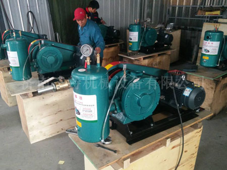 回轉式鼓風機結構精巧,鼓風機壓力范圍:0.1-0.5kgf/CM2。主要由下列六部分組成:電機、空氣過濾器、鼓風機本機、空氣室、底座(兼油箱)、滴油嘴。鼓風機靠氣缸內偏置的轉子偏心運轉,并使轉子槽中的葉片之間的容積變化將空氣吸入、壓縮、吐出。在運轉中利用鼓風機的壓力差自動將潤滑油送到滴油嘴,滴入氣缸內以減少摩擦及噪聲,同時可保持汽缸內氣體不回流。